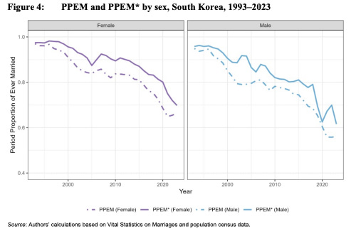 QQ - what's driving the divergence between Korean M and F marriage rates? Korean women-but-not-men are still getting internationally married? Serial monogamy marriage, where one man marries two different women over a time period?
